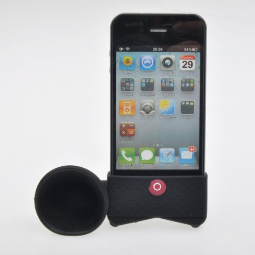 - Silicone horn effectively enlarges music from your iPhone 4
